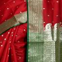 Elevate your ethnic wardrobe with this timeless Woven Banarasi Satin Saree, a perfect blend of tradition and elegance. Crafted from luxurious satin fabric, this saree features intricate Banarasi weaving that adds a regal touch to your ensemble. The smooth, lustrous texture drapes beautifully, making it ideal for weddings, festivals, and special occasions.