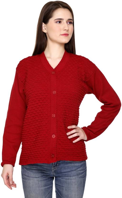 HouseOfCommon Self Design V Neck Casual Women Maroon Sweater