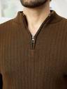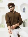 HouseOfCommon Solid High Neck Casual Men Brown Sweater