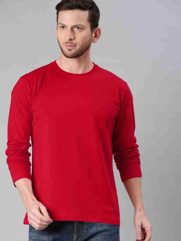 Smart Colors Men Solid Round Neck Cotton Blend Red T-Shirt