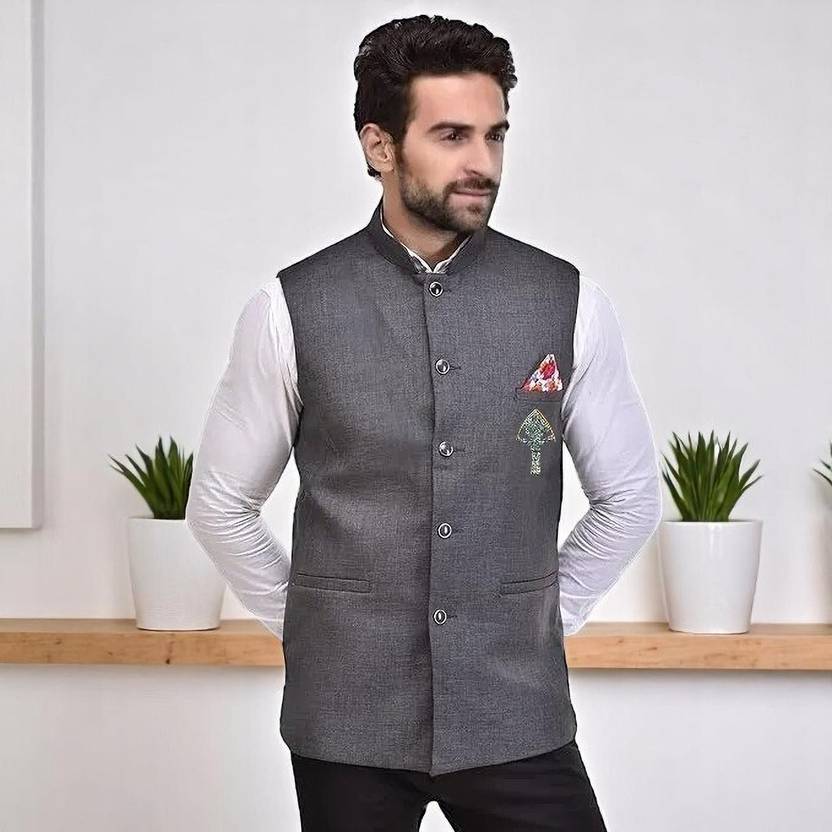 Men’s Nehru/Modi Jacket (Waistcoat) along- Premium Fabric And Free Gift Brooch