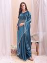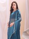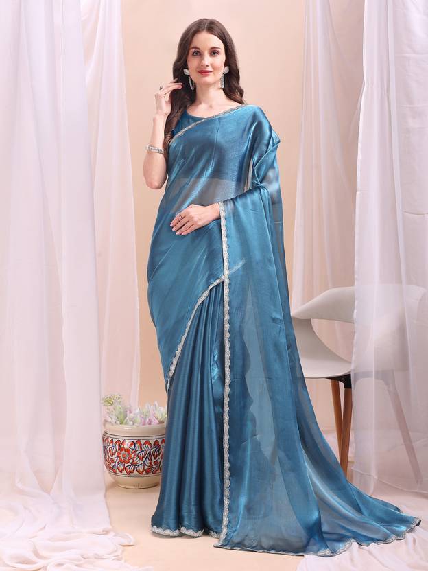 Elevate your ethnic wardrobe with this elegant saree, crafted from soft, lightweight fabric that drapes beautifully for a flattering silhouette. The saree features a shimmering sheen that adds a touch of glamour, while the silver scalloped lace border enhances its sophisticated appeal. Ideal for festive occasions, weddings, and evening parties, this saree is a timeless blend of simplicity and elegance. Pair it with statement jewelry and heels to complete your look.