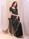 Elevate your ethnic wardrobe with this elegant saree, crafted from soft, lightweight fabric that drapes beautifully for a flattering silhouette. The saree features a shimmering sheen that adds a touch of glamour, while the silver scalloped lace border enhances its sophisticated appeal. Ideal for festive occasions, weddings, and evening parties, this saree is a timeless blend of simplicity and elegance. Pair it with statement jewelry and heels to complete your look.