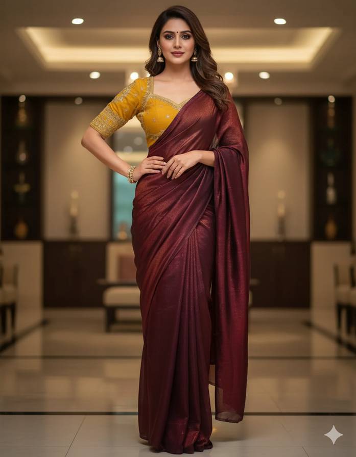 Solid/Plain Bollywood Chiffon Saree (Maroon)