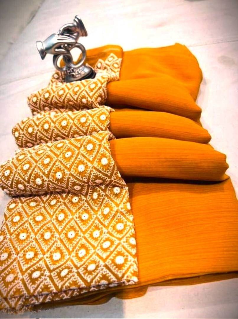 HouseOfCommon Solid/Plain Bollywood Georgette Saree (Gold)