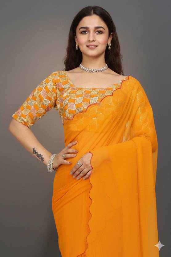 Bollytrend Printed Bollywood Georgette Saree (Mustard)