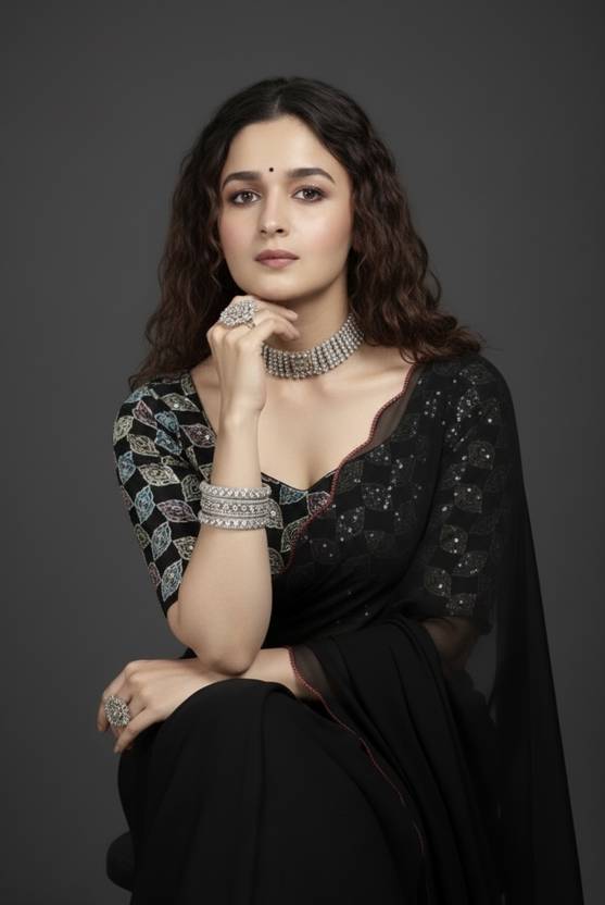 HouseOfCommon Solid/Plain Bollywood Lycra Saree (Black)