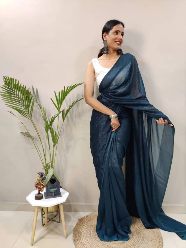Vraggi Solid/Plain Bollywood Lycra Saree (Green)