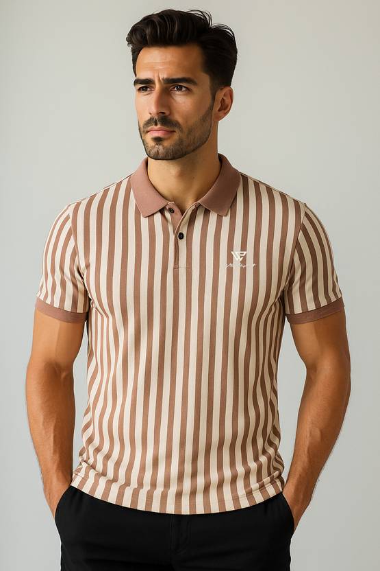 HouseOfCommon Striped Men Polo Neck Multicolor T-Shirt