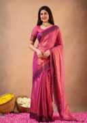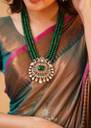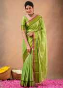 Abharani Saree Kuthir Temple Border Bollywood Tissue Saree (Green, Brown)