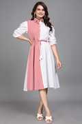 Step out in style with our Women’s Crepe Colour-Block Dress. This dress is designed for comfort and style, featuring a smart collar neck and a colorful pattern that’s perfect for any occasion. The included belt helps to highlight your waist, giving you a flattering fit.