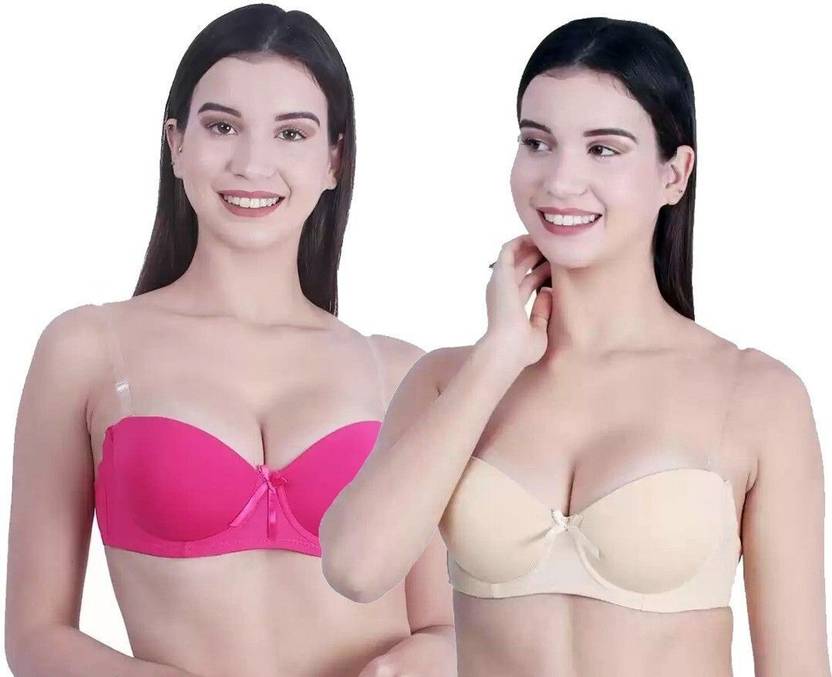 Pack of 2 Women Balconette Lightly Padded Bra (Beige, Pink)