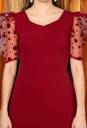 This elegant black midi dress combines classic style with modern fashion. It has eye-catching puffed sleeves made of polka-dotted mesh, giving it a feminine yet sleek look. Perfect for formal events, this dress is both comfortable and stylish, with a flattering fit that makes it great for evening parties or special gatherings. The dress is designed to look effortlessly chic, and its soft fabric ensures a comfortable wear all night.