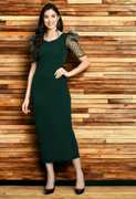 Bodycon Dress For Women, Has a Short puff Sleeve, Sweatheart Neck, Midi Length Western Stylish Dress For Women