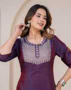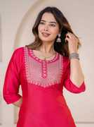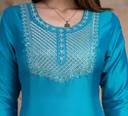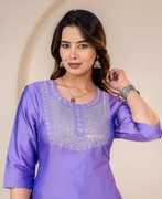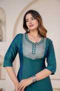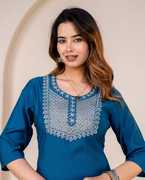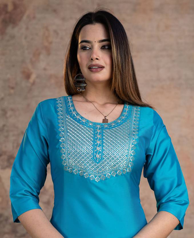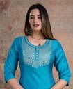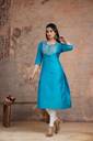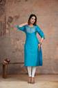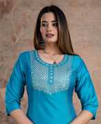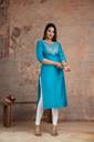Women Embroidered Art Silk Straight Kurta (Blue)