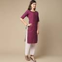 Step into effortless elegance with this beautifully embroidered kurti that brings together classic design and modern appeal. Crafted from soft, breathable fabric, it offers exceptional comfort while maintaining a refined, graceful look. The neutral-toned base sets the perfect backdrop for its intricate embroidery, allowing the details to truly shine. The neckline features elaborate floral embroidery in contrasting black and gold threads, creating a striking focal point that exudes charm. Additional delicate motifs are scattered across the front, lending the piece a sophisticated and cohesive design. This kurti is an ideal choice for those who appreciate fine detailing and subtle artistry in their everyday wear. Three-quarter sleeves enhance its versatile appeal, with a dainty lace trim on the cuffs adding an extra layer of refinement. The straight cut and relaxed silhouette flatter all body types, offering ease of movement and styling versatility. Whether paired with leggings, trousers, or denim, it effortlessly transitions from casual to semi-formal occasions.
