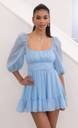 Solid Fit and Flare, Fit & Flare, Knots & Gathers, Knots and Tie ups, Mini, Puff Shoulder, Shoulder focus, Waist Tie Dress, Ruffles