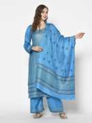 This pretty piece is a fairy tale that begins to unfold as you reveal your beauty in it. Look ethnic in this dress material. This acro wool woven suit is beautifully adorned with woven work comes along with acro wool bottom and dupatta, making it appear more adorning. Women can buy this suit to wear for their upcoming festivals, homely functions, parties, kitties, weekends get together. Get this unstitched suit stitched according to your fit and comfort. Team it with stylish accessories to make your looks more beautiful. Note:- The actual product may differ slightly in color and design from the one illustrated in the images when compared with a computer or mobile screen.