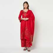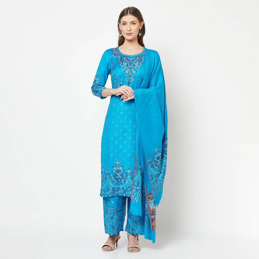This pretty piece is a fairy tale that begins to unfold as you reveal your beauty in it. Look ethnic in this brown-colored dress material. This acro wool woven suit is beautifully adorned with woven work comes along with acro wool bottom and dupatta, making it appear more adorning. Women can buy this suit to wear for their upcoming festivals, homely functions, parties, kitties, weekends get together. Get this unstitched suit stitched according to your fit and comfort. Team it with stylish accessories to make your looks more beautiful. Note:- The actual product may differ slightly in color and design from the one illustrated in the images when compared with a computer or mobile screen.