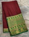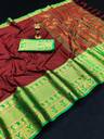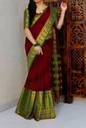 HouseOfCommon Woven Narayanpet Cotton Blend, Cotton Silk Saree (Maroon, Green)
