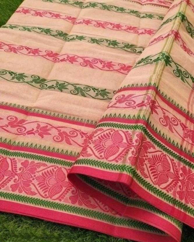 HouseOfCommon Woven Tant Pure Cotton Saree (Beige)