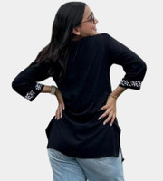 Enjoy all-day comfort with a soft blend of cotton, rayon and viscose rayon fabrics. This combination creates a lightweight feel that is gentle on your skin while offering breathability, ideal for busy days or special gatherings alike. The fabric ensures you remain comfortable without compromising on style or elegance.