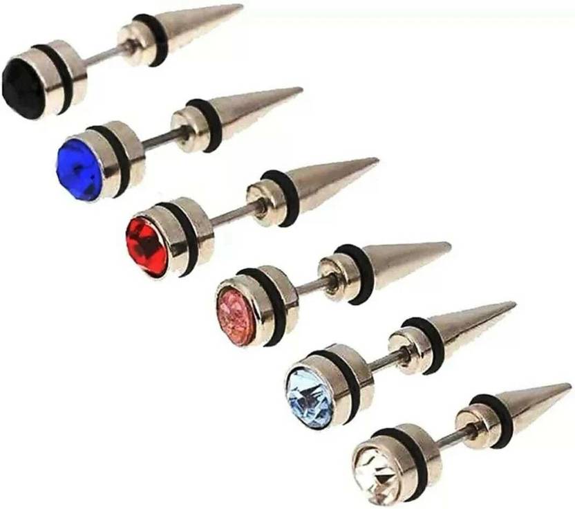 BULLET POINT STAINLESS STEEL EAR STUDS FOR MENS AND WOMENS IN 6 DIFFERENT COLOURS ZIRCON STUDDED (PACK OF 6PCS)