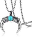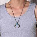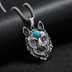 HOUSEOFTRENDZZ Double Sided Turquoise Bull Horn Locket Fashion Domineering Bull Head Pendant Silver Turquoise Stainless Steel Pendant
