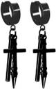 Jesus Cross Tassel Urban Huggie Hinged Hoop Dangle Earrings Mens & Womens STAINLESS STEEL EARRINGS Drops & Danglers (PACK OF 1 PAIR ) BLACK