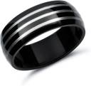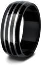 HOUSEOFTRENDZZ MEN'S BLACK PLATTED TITANIUM BRUSHED AND POLISHED STRIPED RING (1 PIECE) Stainless Steel Titanium Plated Ring
