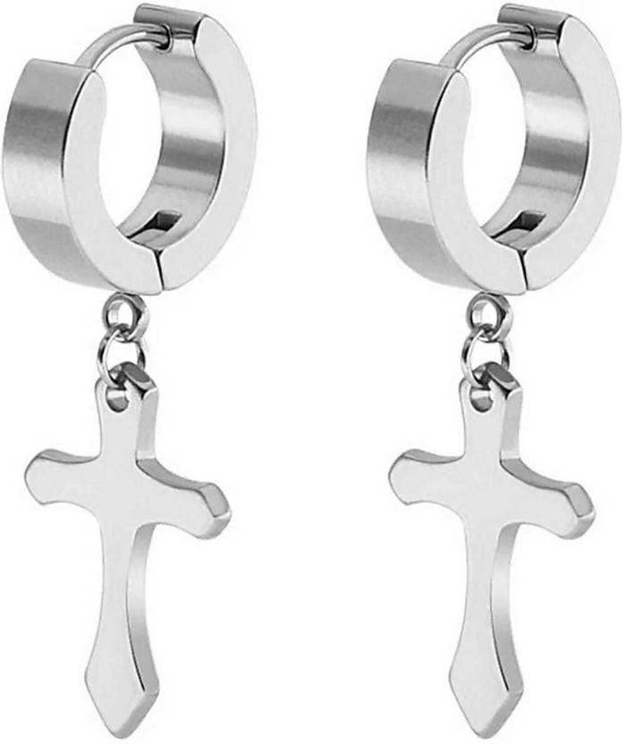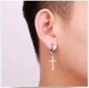 Stainlesss Steel Cross designed sterling silver coloured Stud Earring & religious for mens / womens