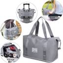 ( 2 ) Expandable travel duffel bags provide up to 2 levels of expanded sizes to meet most weekend travel needs. The dry and wet separate pocket provides exclusive pockets for toiletries and wet towels, a good choice for sports gym tote bags.