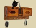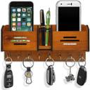 HOUZZ DECOR 8 Hooks Line and 2 Pocket Pen Stand Wood Key Holder (7 Hooks, Brown)