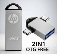 HP 128GB PENDRIVE FREE USB OTG 128 GB Pen Drive Compatible with Audio Player, Laptop, Gaming Console, Mobile, Tablet USB 3.0 Metal Case (Silver)