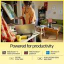 Stay productive with HP Laptop powered by an AMD Ryzen 3 7320U processor and AMD Radeon graphics for seamless performance and stunning images. Multitask at lightning speed with 8 GB LPDDR5 RAM and 512 GB SSD storage. Work and play better with the 39.62 cm (15.6) FHD display, full-size keyboard, and HP True Vision camera. Stay powered up to 10.5 hours and enjoy sustainable design for everyday convenience and productivity.
