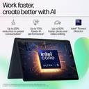 Get up to 50% faster photo and video editing with built-in Al processing power of Intel Core Ultra 7 155U with 12 cores and 14 threads. - 3D Hybrid architecture - Intel Thread Director - Dynamic Power Share