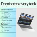 Connect confidently to any device using Wi-Fi 6 and Bluetooth 5.3 wireless cards that offer a seamless internet connection while the HP True Vision 1080p FHD6 camera enables smooth video calls. This HP laptop allows dual array mics, Temporal Noise Reduction, Manual Privacy Shutter, and dual speakers.