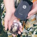 This HP gift box features an HP Sprocket portable photo printer, one HP Zink Sticky-backed Photo Paper, 10 Wooden Clips, a String, and a Baby Memories Journal Book.