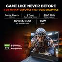 Access high-speed, ultra-realistic gaming powered by 4 GB NVIDIA GeForce RTX 3050 graphics and Game-Ready Drivers, featuring 2nd Gen Ray Tracing Cores, NVIDIA DLSS AI Tensor Cores, 75 W TGP, and 3200 MHz Memory speed.