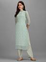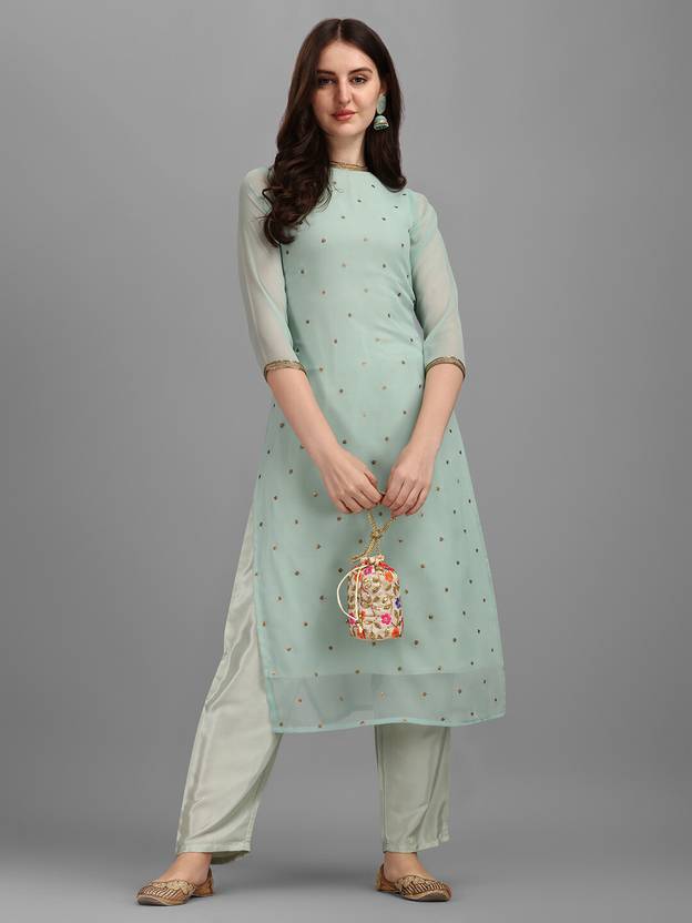 Include yourself in a glamour of a season with this blue colored kurti pant set. This sequins embroidered kurti is fashioned on faux georgette fabric. Comes with satin silk bottom. Women can buy this set to wear for their casual wear, daily wear, weekend get-together. Team it with high heels and fashionable accessories to look more attractive. This attractive set will surely fetch you compliments for your rich sense of style.