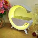 Wireless Charging Atmosphere Lamp with Bluetooth Speaker FM Radio 6 GB Music sync Lighting Mode for Bedroom Office Birthday Gift for Women Men Girls Boys Wireless Charging Atmosphere Light Newly upgraded G-shaped design. The lamp is not only an atmosphere light, Bluetooth speaker, music, sleep light, atmosphere light, bedside light, glare effect, Bluetooth audio, clock, alarm clock and other functions. You can use this great light while working, studying, reading and sleeping.
