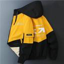 HRKBY JK Men Colorblock Casual Jacket, hooded windcheater jacket, white red stripe jacket, lightweight and breathable, regular fit jacket, functional pockets, trendy colorblock design, outdoor adventure jacket, casual wear jacket, affordable men's jacket, versatile windcheater, perfect for gifting, size-inclusive jacket, stylish and practical jacket, easy-to-maintain jacket.