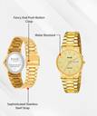 Premium, Water resistant, Time & Date, Square Dial, Colored dials, Bracelet, Metal Strap, Gold Tones