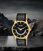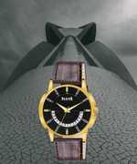 GLD-BLK-9224 Original Black Plated Belt (Patta) Watch & Golden Company Watch