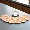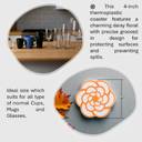 Bring a touch of sophistication and charm to your home décor with this beautifully designed set of blossom-shaped coasters. Featuring layered, rounded grooved-in petals outlined in vibrant orange with a smooth white base and a dotted floral center, each coaster resembles a stylized blooming flower offering a modern, decorative accent to any setting. This set includes 6 coasters, each measuring 4 inches (10.16 cm) in diameter, providing ample space for mugs, glasses, cups, or small bowls. Crafted from durable, high-quality thermoplastic, these coasters shield your surfaces from water rings, heat marks, and scratches while adding a bold botanical design element to your space. The intricate petal contours and soft curves create a dimensional, eye-catching appearance that’s perfect for both daily use and entertaining guests. Whether placed on a coffee table, dining area, or work desk, these coasters bring the perfect balance of aesthetic appeal and practicality. A coordinating holder is included to keep the coasters organized and within easy reach, making them as functional as they are beautiful. Their bold floral pattern and lively colors also make them a thoughtful gift for housewarmings, festive gatherings, or anyone who appreciates creative, nature-inspired design. Add these modern floral coasters to your home to effortlessly blend elegance with everyday utility one cup at a time.