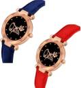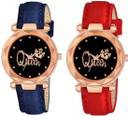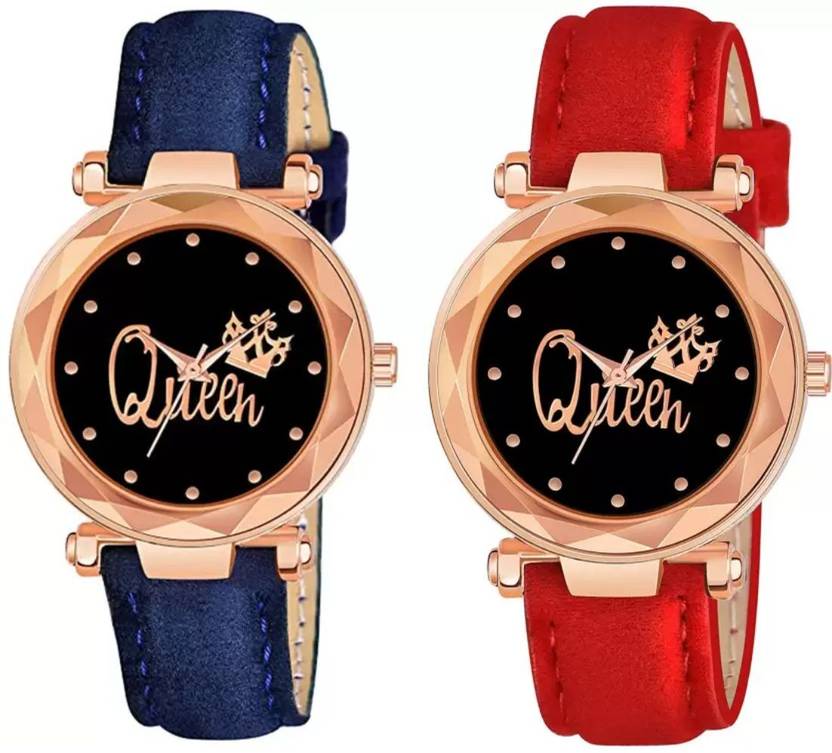 Analog Watch - For Women Rose Gold Cash Queen Dial Blue&Red Leather Strap Watch For Girls