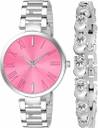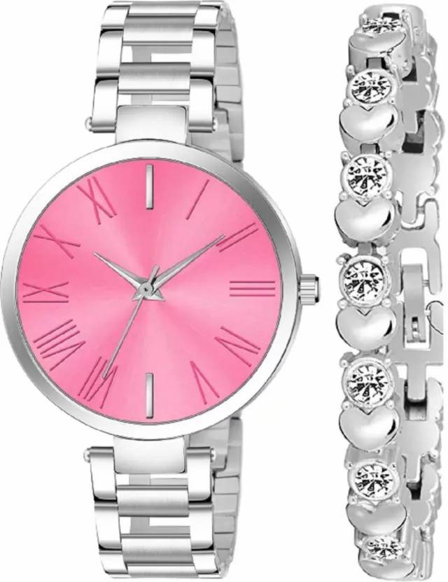 Analog Watch - For Women Pink Dial With Gift Diamond Studded Bracelet Girls Analog Watch