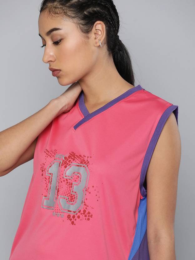 HRX by Hrithik Roshan Colorblock Women V Neck Pink T-Shirt