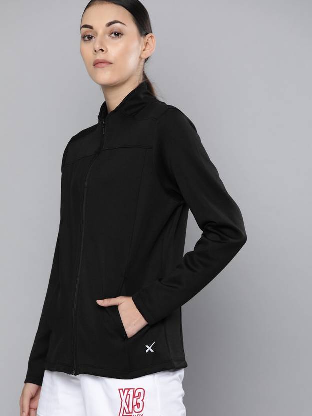 The HRX Womens Running Jacket pushes you to perform your best even on days when you dont want to step out. Designed with Rapid-Dry technology, it wicks away sweat so you can stay comfortable from start to finish.Features:Running JacketRapid-Dry Technology wicks sweat amp; makes the t-shirt dry fast.Opening: Chest zipNeck: Mock CollarSleeve: Full SleevesColour: Jet BlackFit: Slim Fit. This fashionable HRX by Hrithik Roshan black jacket will help you declare your style this season. This piece can be matched with dark wash jeans and a cute tee when youre going to dinner with your family.