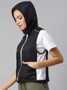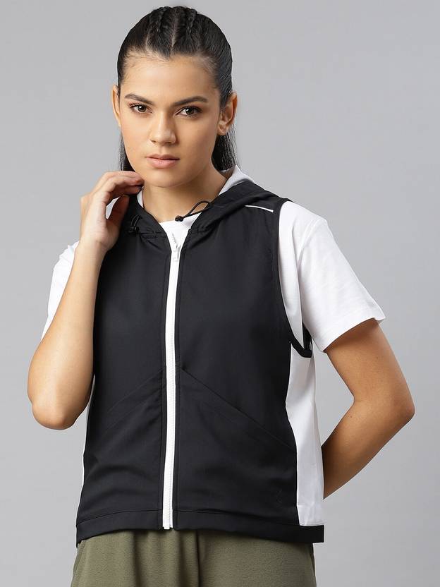 Make a sporty style statement everywhere you go with the HRX Womens Athleisure Jacket. The Rapid Dry technology wicks away sweat to keep you cool while the Anti Static technology gives you the perfect fit and the hoodie styling makes you stand out.FeaturesAthleisure JacketRapid Dry Technology wicks sweat amp; makes the fabric dry fastAnti static technology to keep the jacket from clinging to youAdjustable hood protects your ears and neck when you step outdoorsDeep armholeSleeve length: SleevelessDesign: ColourblockLength: 21 Cropped lengthColour: Jet Black and Optic WhiteFit: Regular fit.